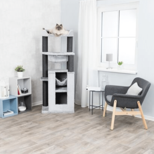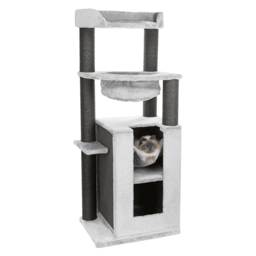 Proizvođač: Trixie Materijal: pliš (poliester), sisal Boja: svetlo siva Prečnik stuba za grebanje: 11 cm Veličina postolja: 63 x 50 cm Visina: 163 cm