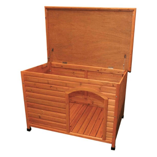 Kućica za pse je opremljena krovom sa praktičnim šarkama koje se mogu lako podignuti. To znači da svaki kutak enterijera možete brzo i bez napora očistiti, bez iscrpljujućeg ostajanja na kolenima ili korišćenja specijalnih alata. Jednostavno otvorite krov i obavite čišćenje brzo – što štedi Vaše vreme i energiju.